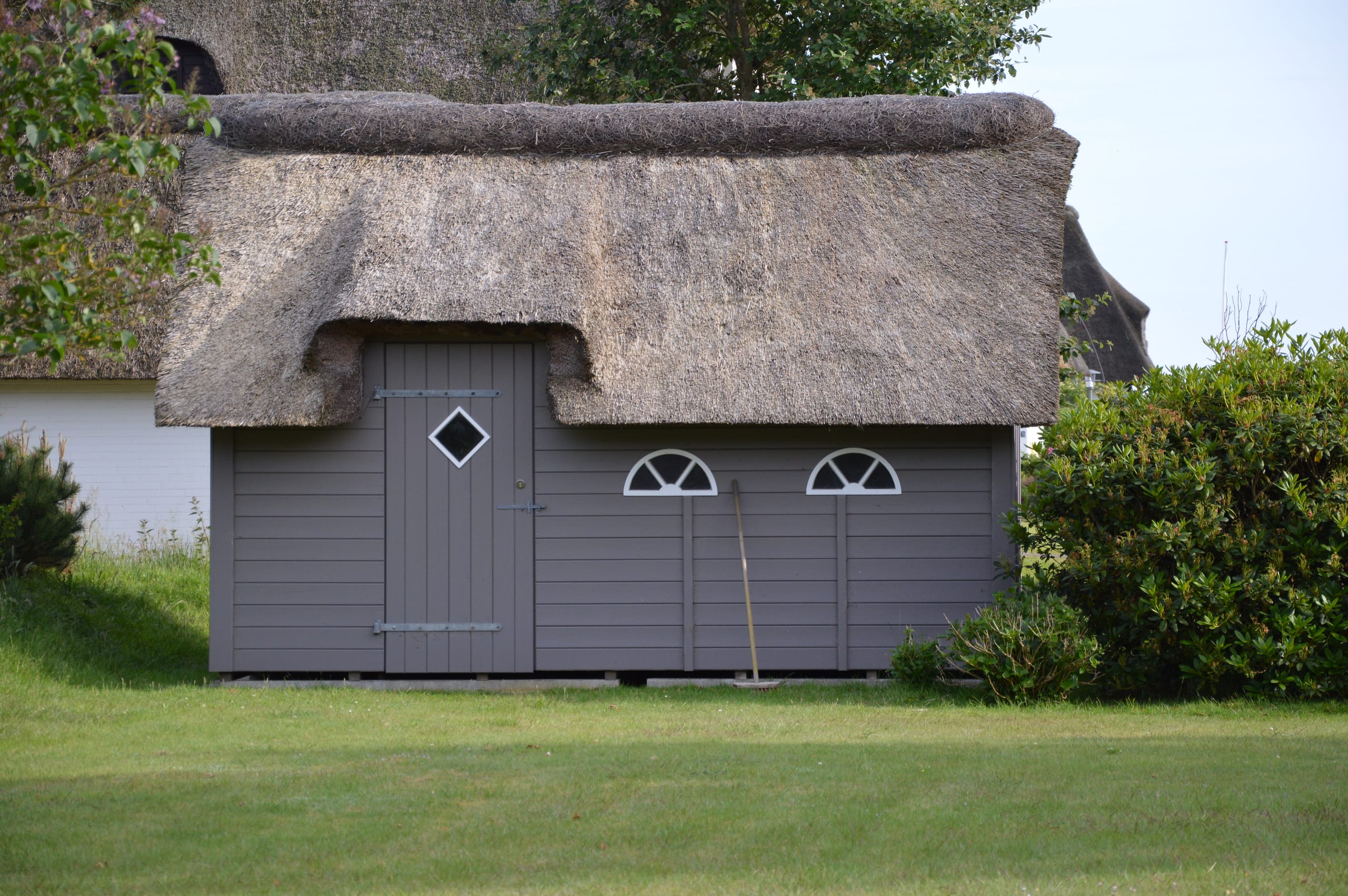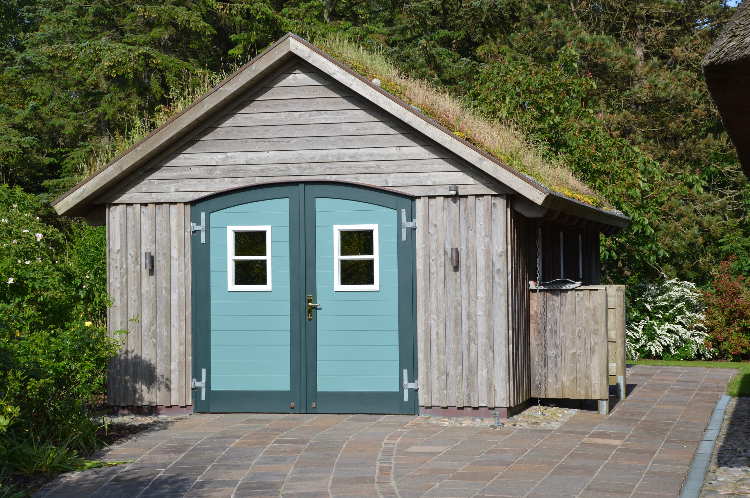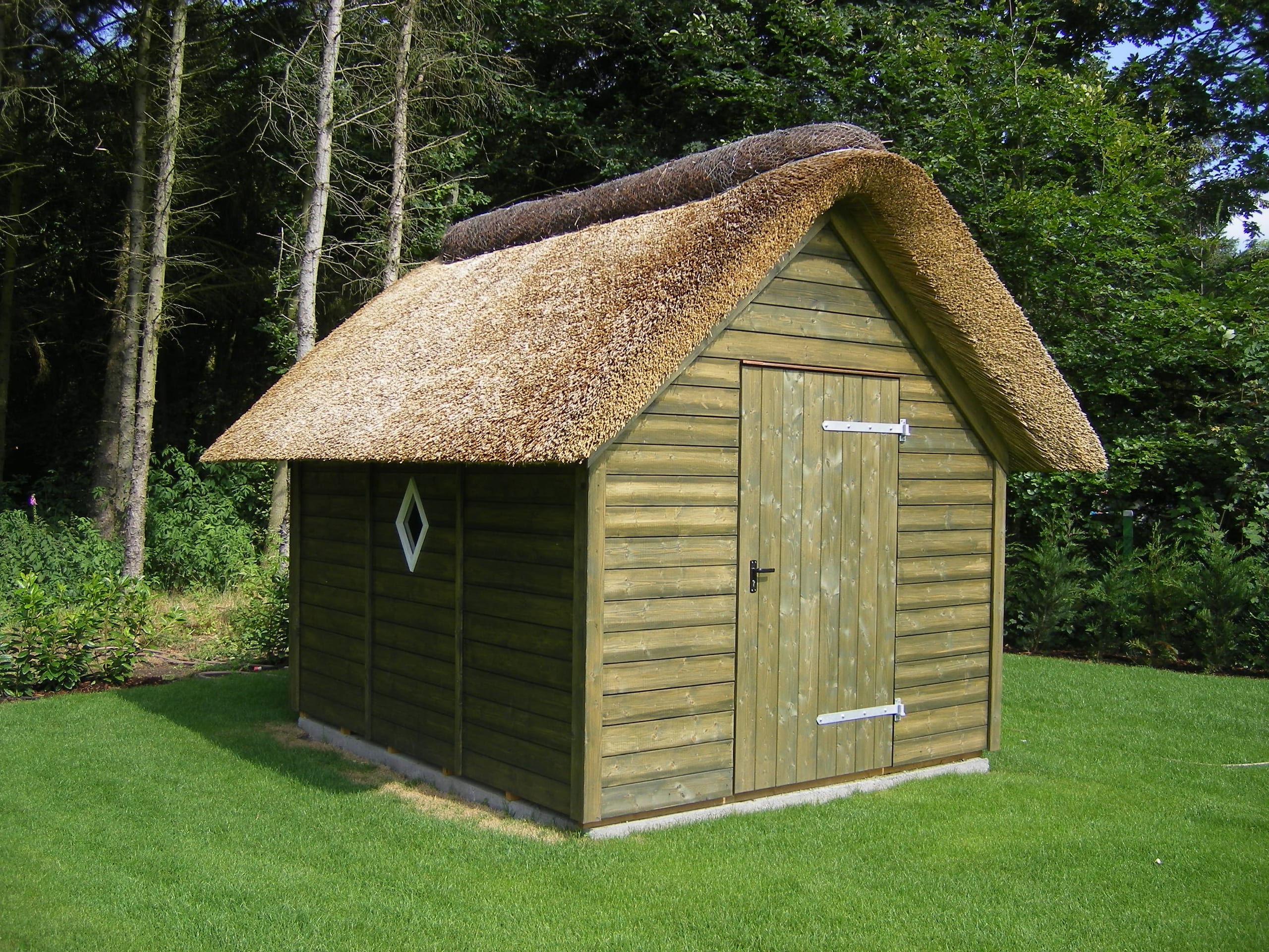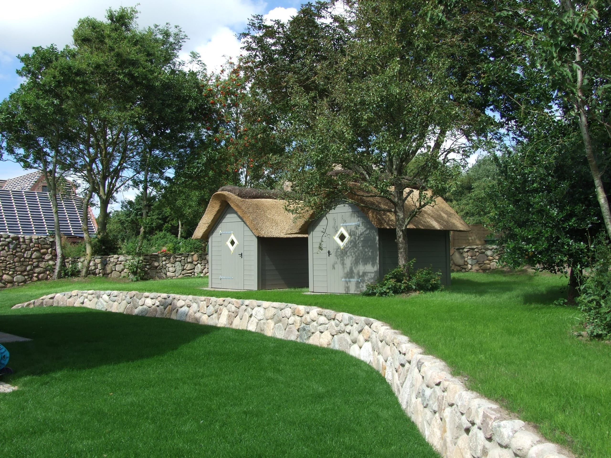 Gartenhütten und Gerätehäuser in Holzbauweise – mit Reetdach, Hartdach oder Dachbegrünung, abgestimmt auf Grundstück und Stil.